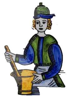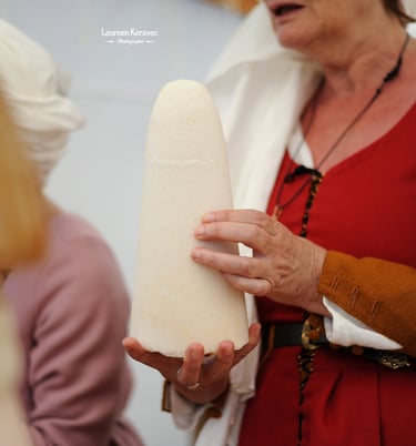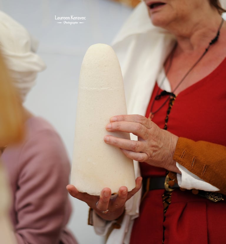 Sous les traits de Dame Marguerite, apothicaire érudite du XVe siècle, elle accueille curieux et voyageurs du temps dans le décor soigneusement reconstitué de son échoppe. Elle conte les secrets d’une médecine héritée des Anciens.